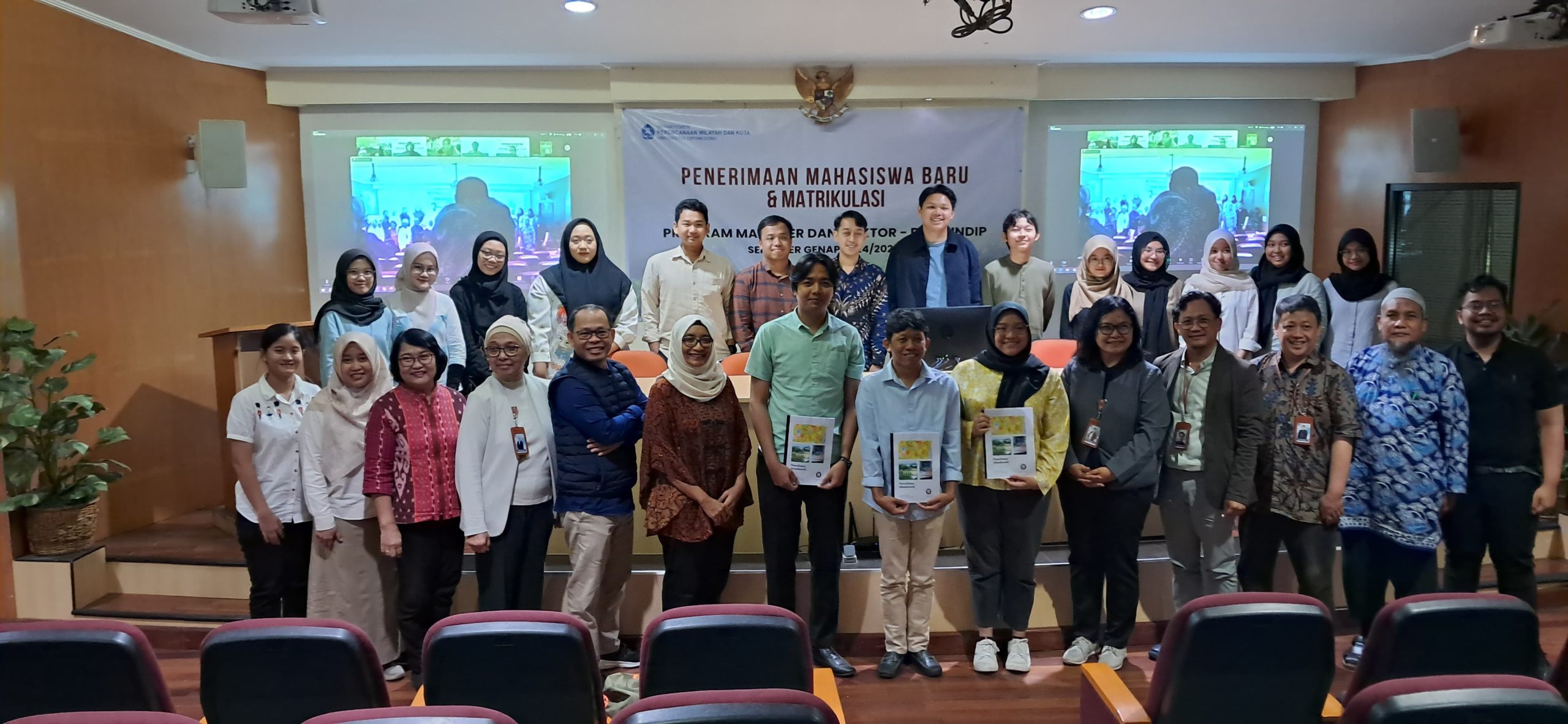Magister Perencanaan Wilayah dan Kota menyelenggarakan kegiatan Penerimaan Mahasiswa Baru dan Pembukaan Kuliah Matrikulasi untuk semester Genap 2024/2025 pada tanggal 30 Januari – Februari 2025 di ruang Teater, diawali laporan oleh Ketua Program Studi MPWK, Wido Prananing Tyas, PhD dan dibuka oleh Ketua Departemen Perencanaan Wilayah dan Kota, Prof. Dr.-Ing. Wiwandari Handayani. Pada semester Genap 2024 ini, prodi MPWK menerima sebanyak 26 mahasiswa diantaranya 18 mahasiswa By Course dan 4 mahasiswa By Research. Kegiatan PMB ini sekaligus dijadikan sebagai awal dibukanya perkuliahan matrikulasi yang diikuti oleh mahasiswa dengan tujuan untuk menyatukan persepsi tentang ilmu Perencanaan Wilayah dan Kota dan mahasiswa dituntut untuk mengetahui lebih awal tentang penulisan akademik.